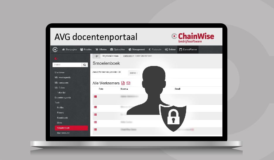 Docenten en instructeurs kunnen niet langer het gehele smoelenboek inzien, maar alleen de eigen gegevens. In het docentportaal zijn privé-gegevens van cursisten niet meer zichtbaar.