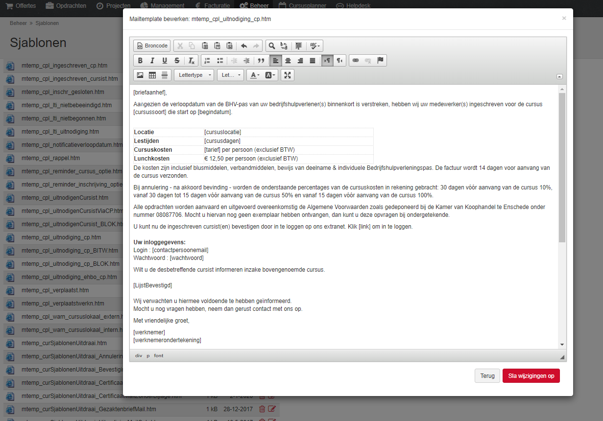 Het is nu mogelijk om .htm templates in de map 'mailtemplates' direct vanuit ChainWise te bewerken (eventueel met html opmaak) en op te slaan. Hierdoor is het niet meer nodig om een mailsjabloon te downloaden, met een tekst editor aan te passen en dan weer te uploaden.
